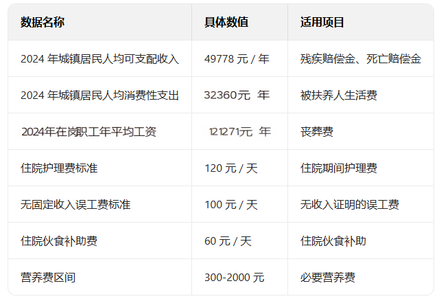 以下数据均来自重庆市统计局 2025 年最新公布及司法实践通用标准,是赔偿计算的核心依据:
